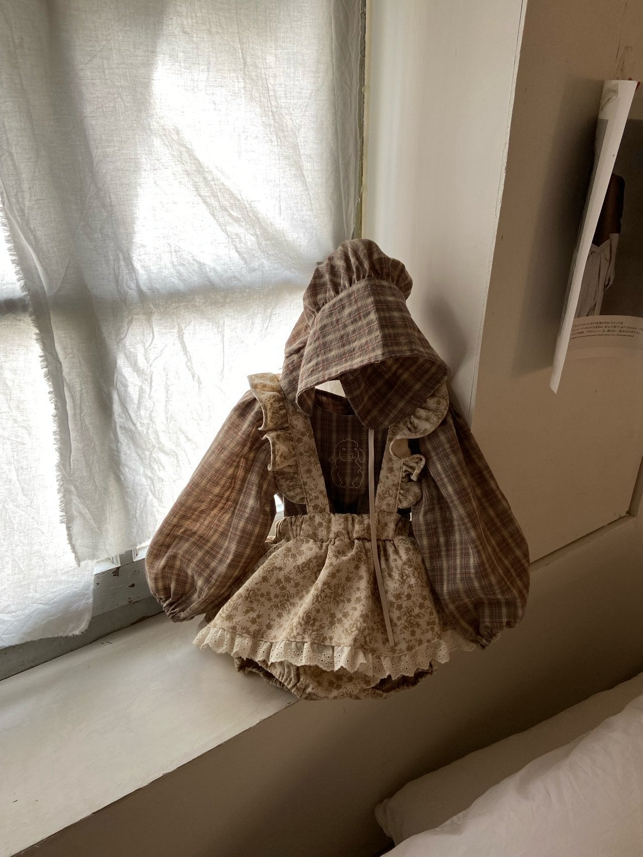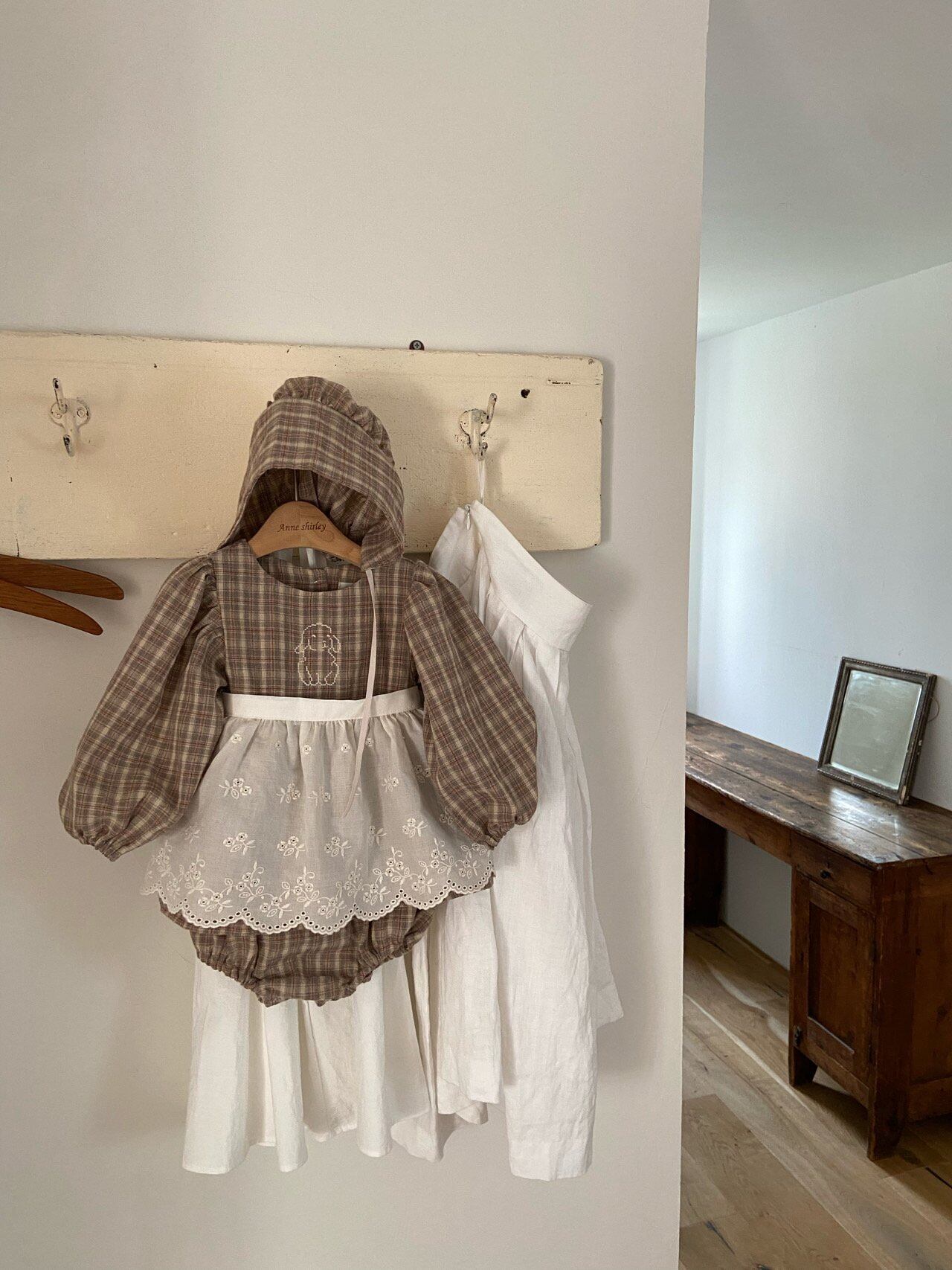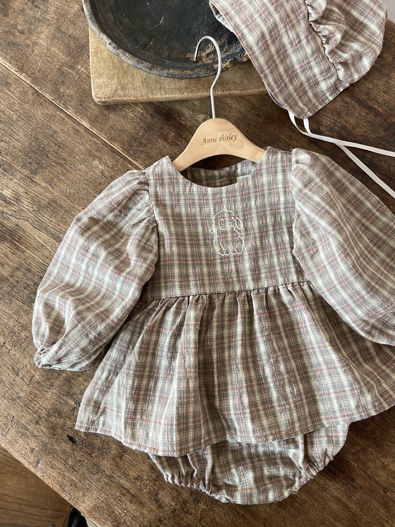 残り1点 即納⌇90cm チェック ロンパース ボンネット セット